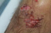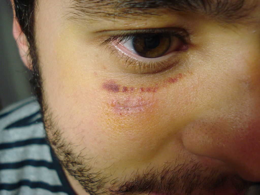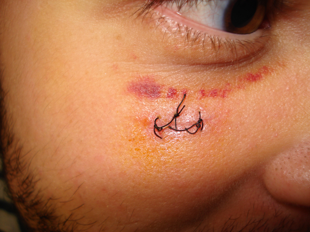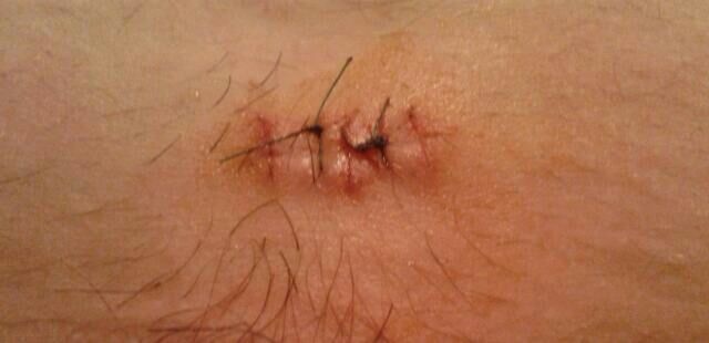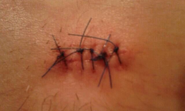 Herida inciso-contusa por impacto contra una roca. Resultado a los 15 días. |