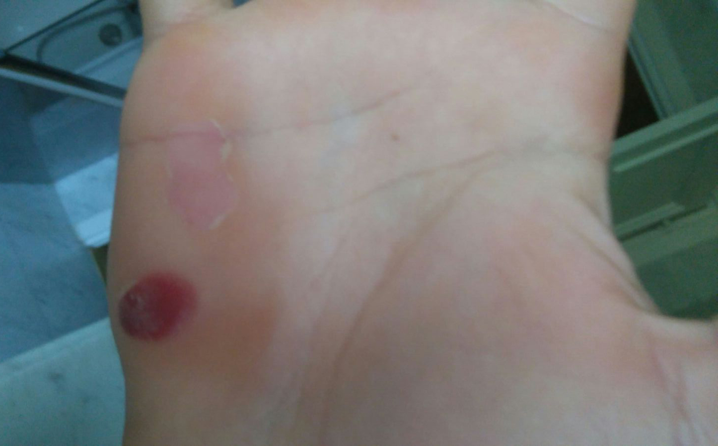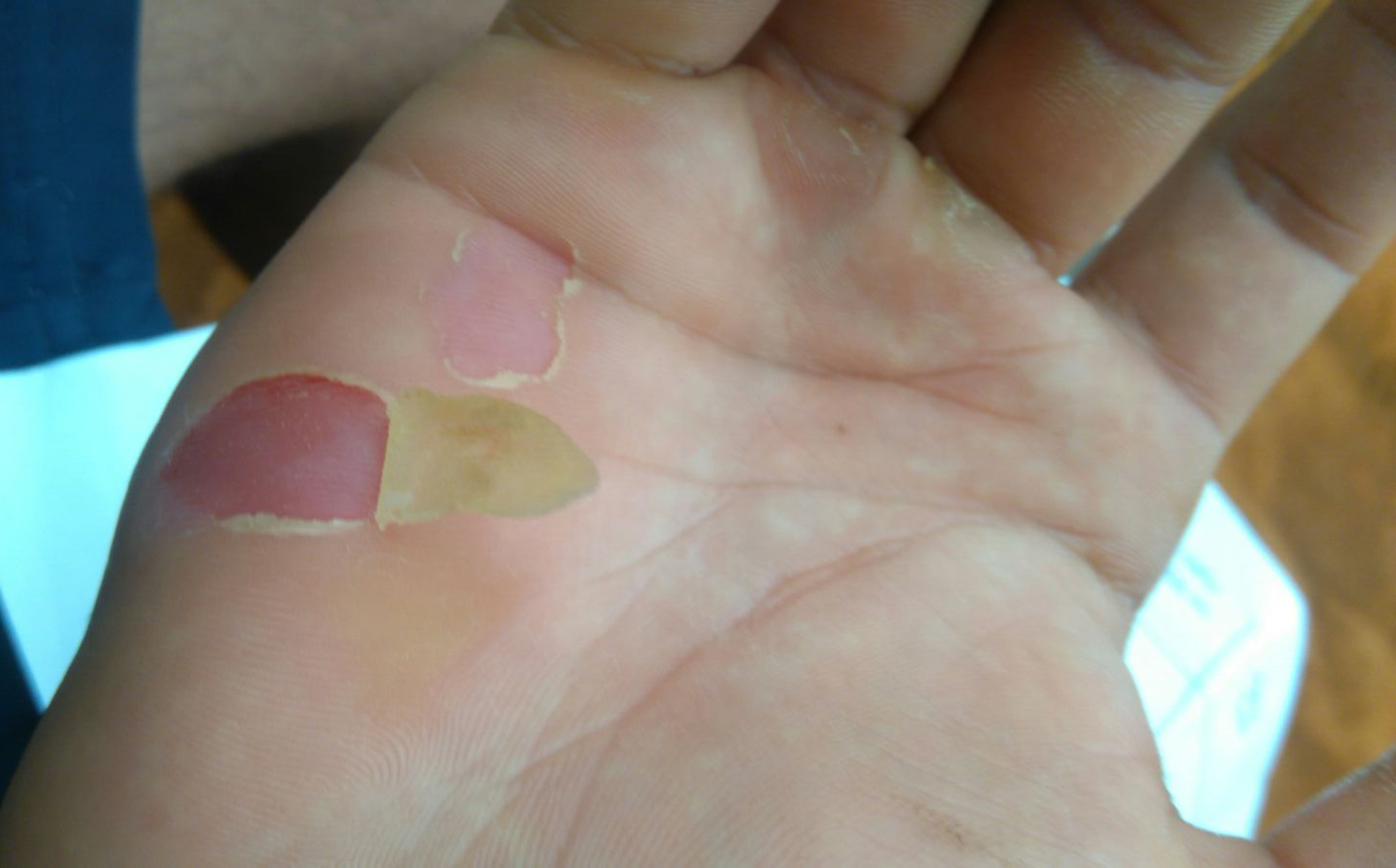 Desolladura en la mano por rozamiento continuado |