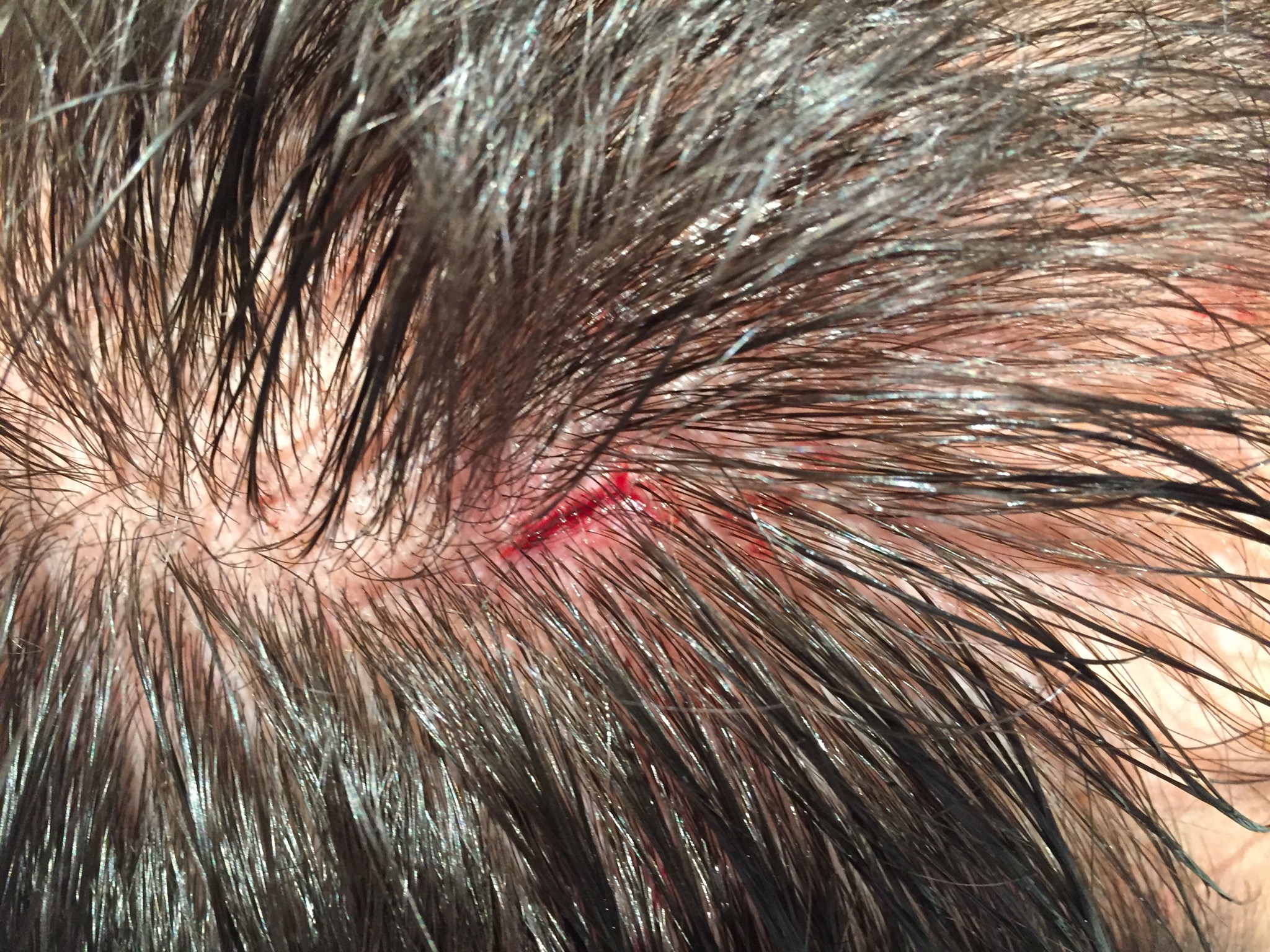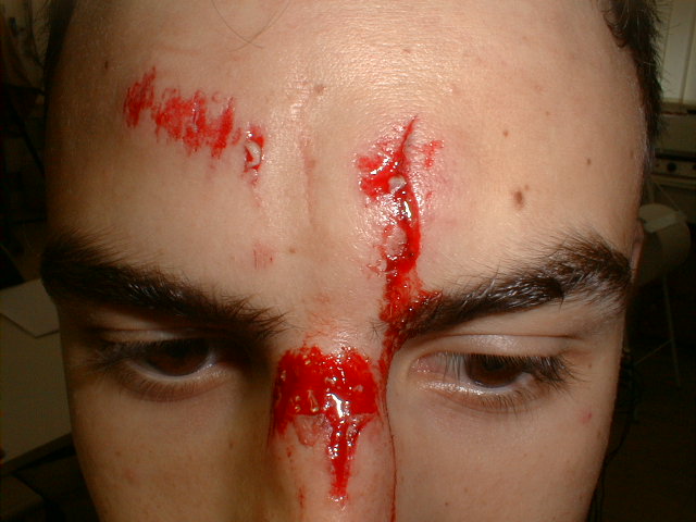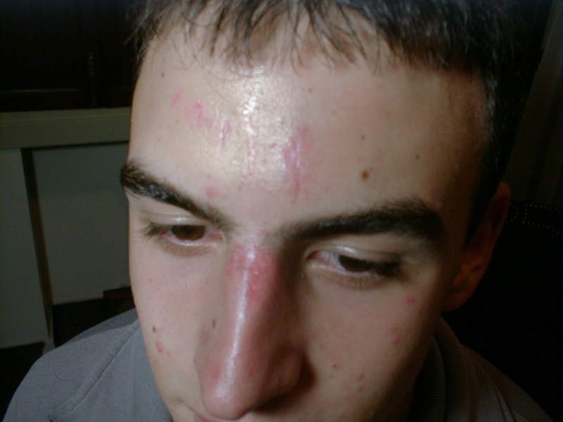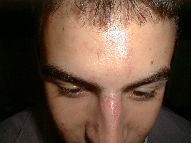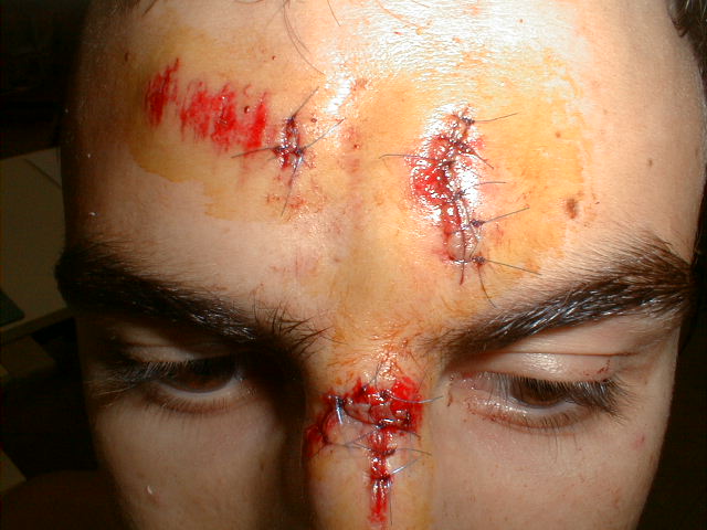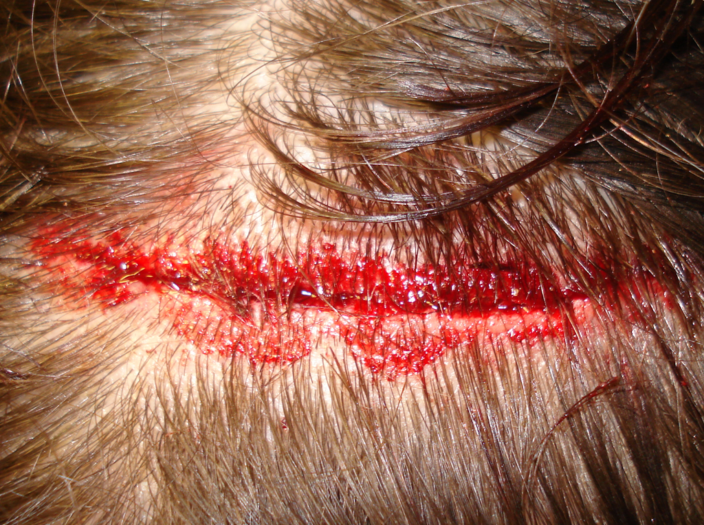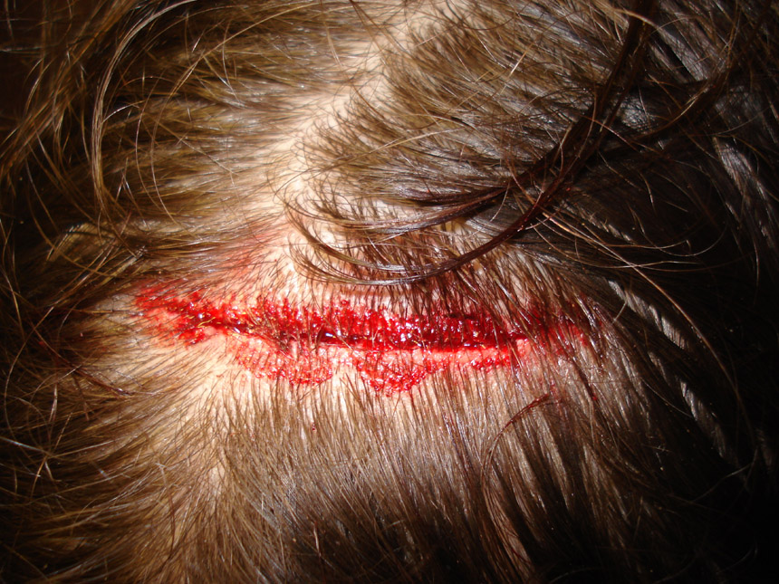 Herida incisa en cuero cabelludo, por impacto con un mueble | Herida incisa (impacto contra borde de ventana) | |||