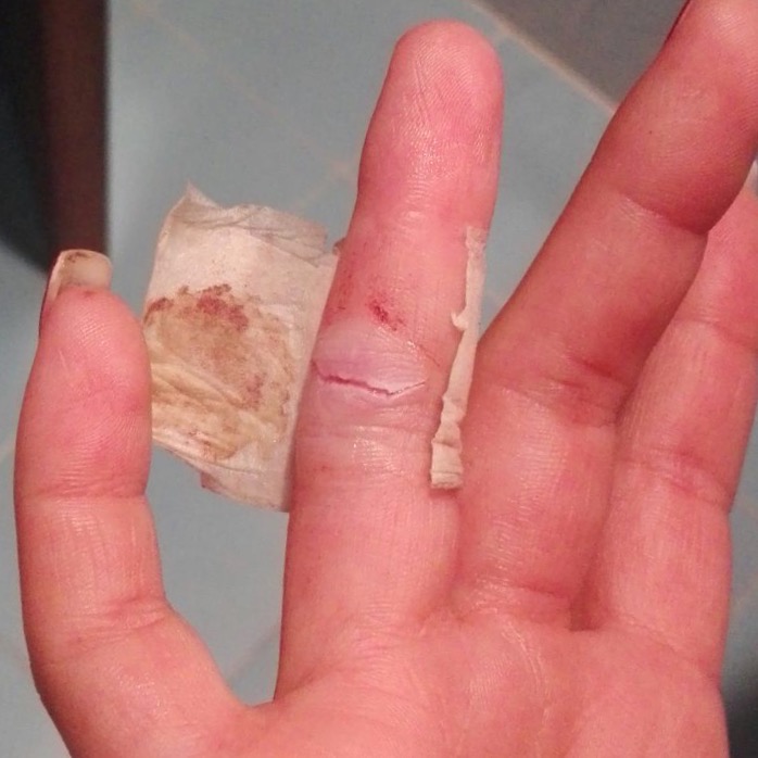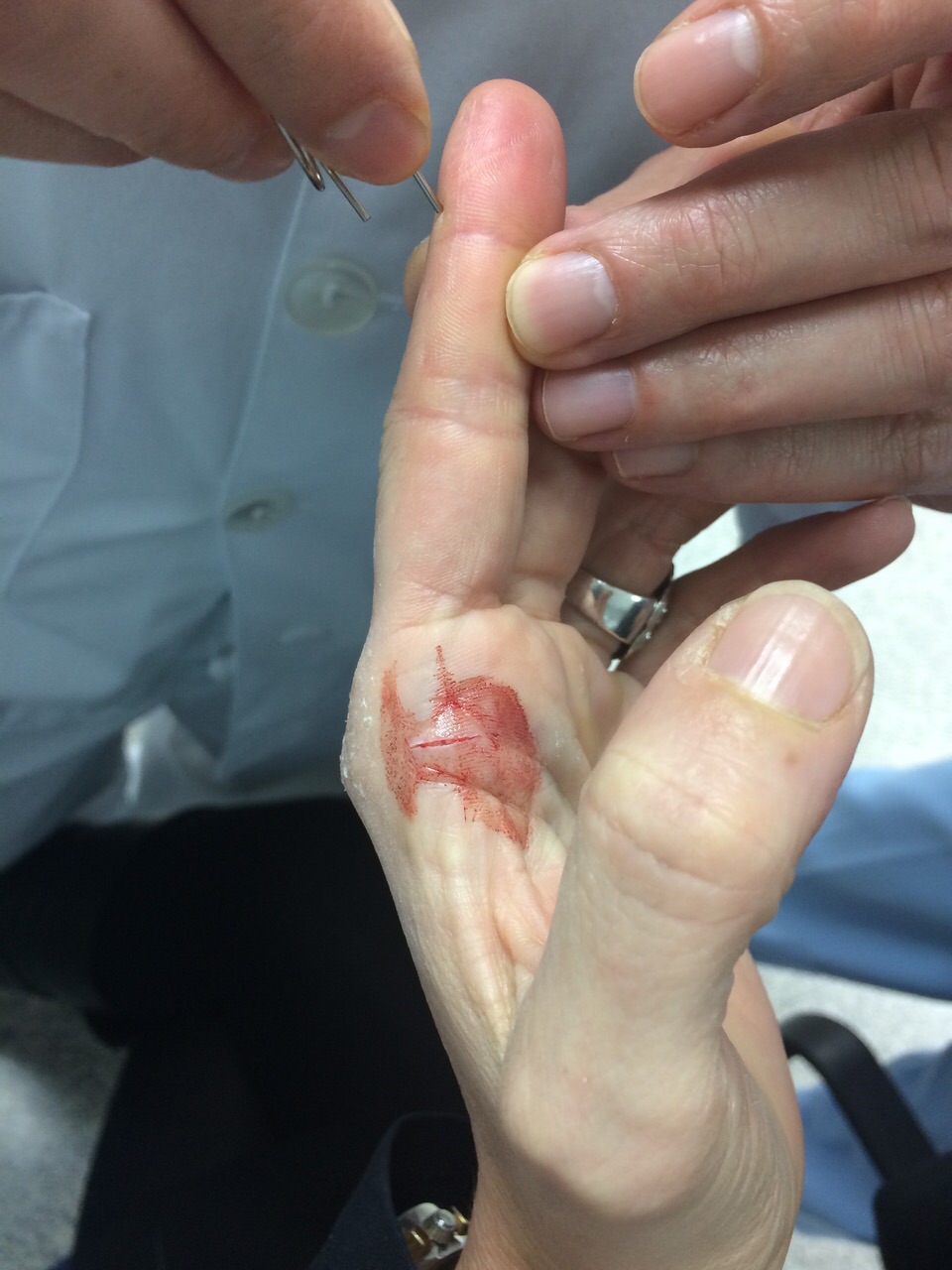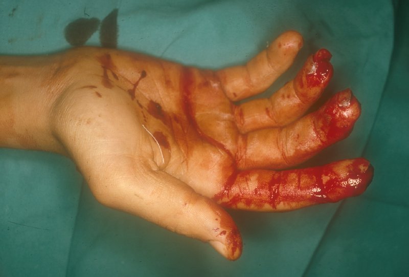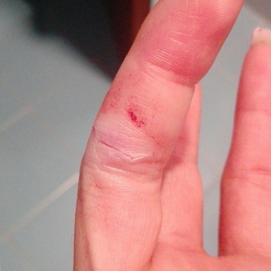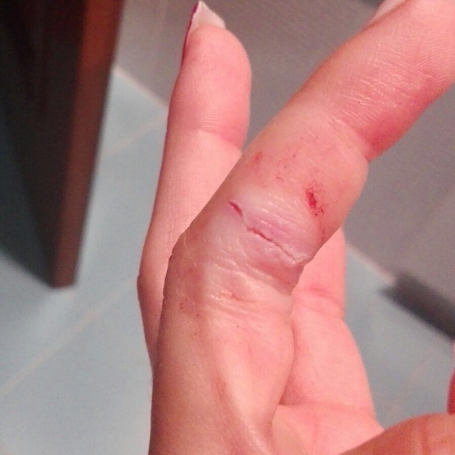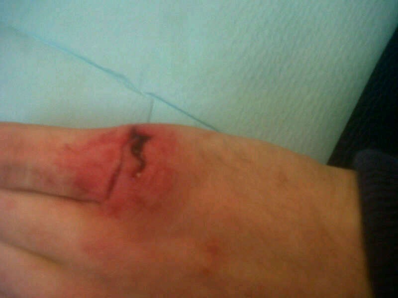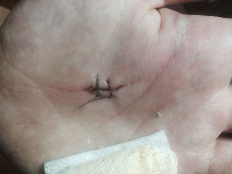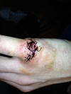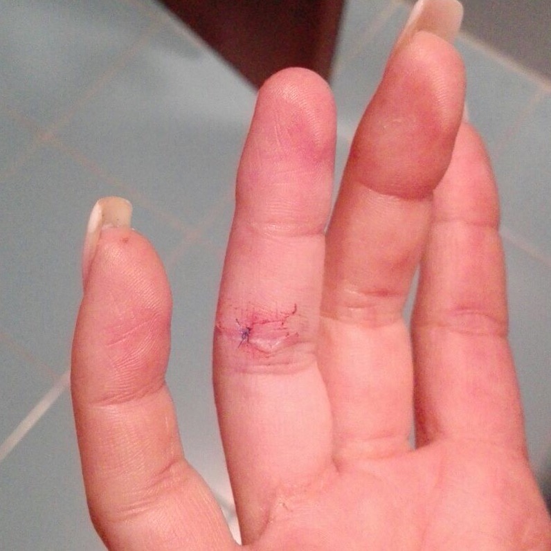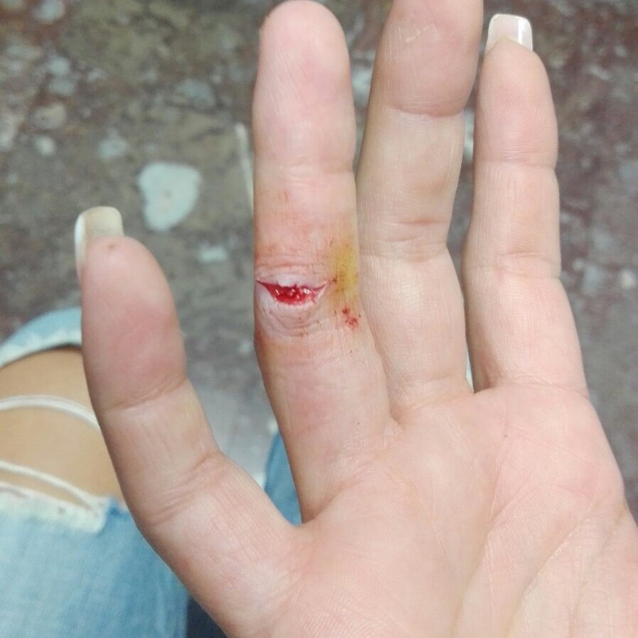 | Herida incisa en en un dedo de la mano: aspecto incial, sutura y resolución. | ||||||||