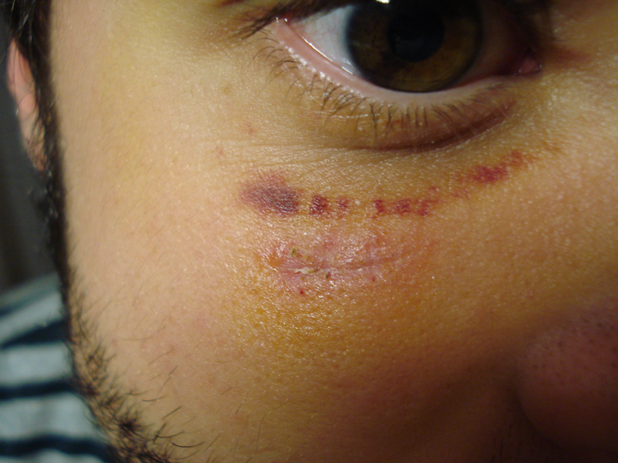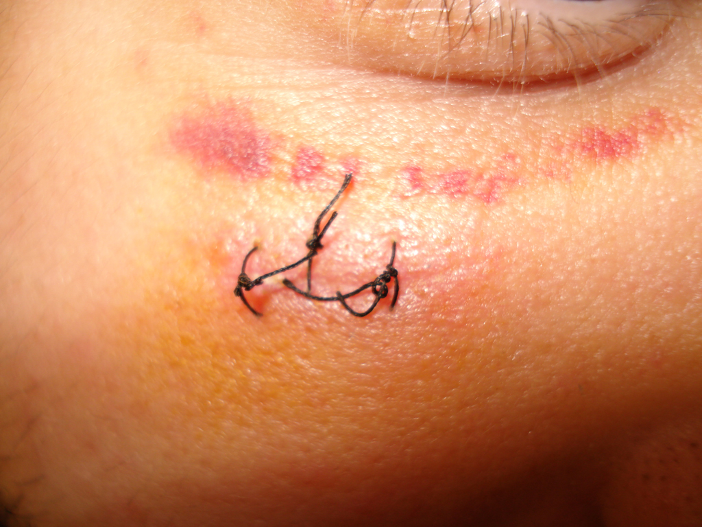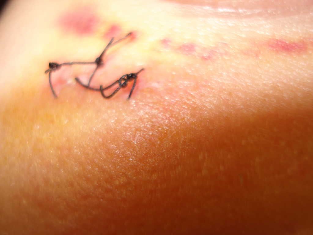 | El anudado incorrecto de los puntos hace que estos se aflojen. | Cicatriz en el 8º día de evolución | ||||