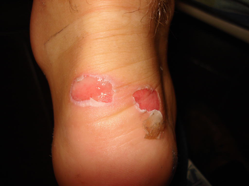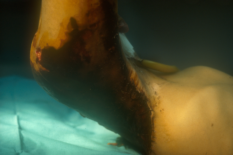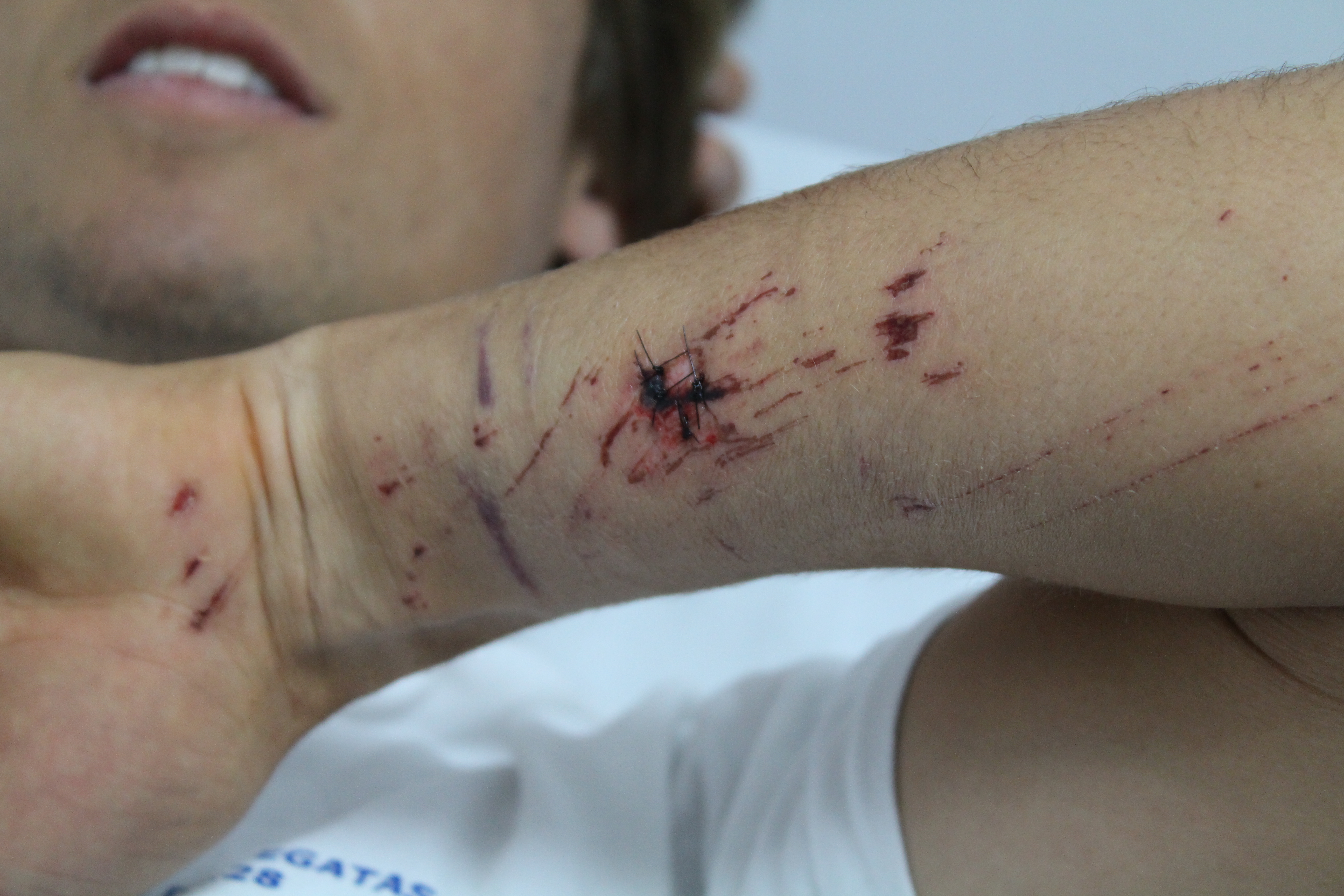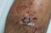 | Múltiples lesiones por una caída en las rocas de un acantilado: desolladuras que curaron por segunda intención y heridas que pudieron ser suturadas. |