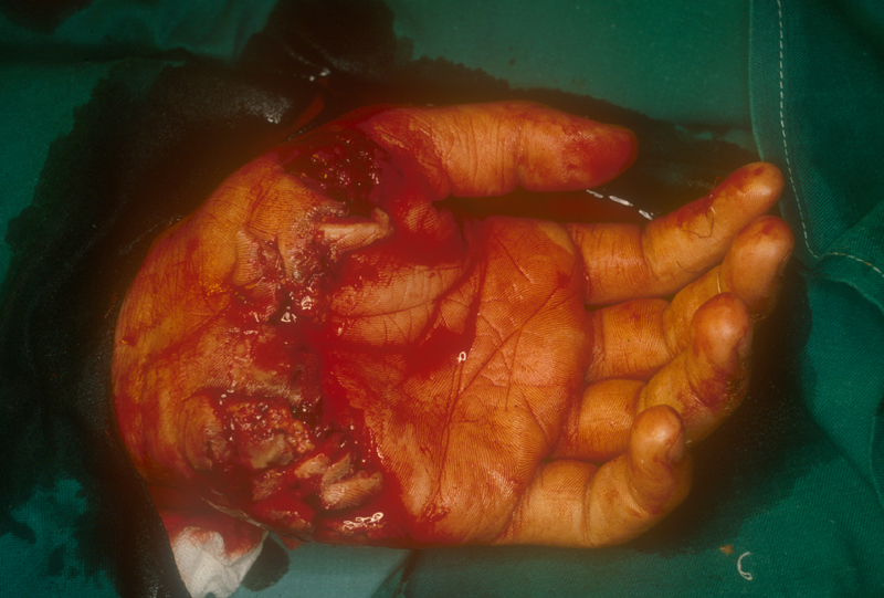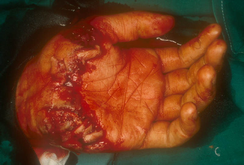 Herida inciso-contusa en la mano |
