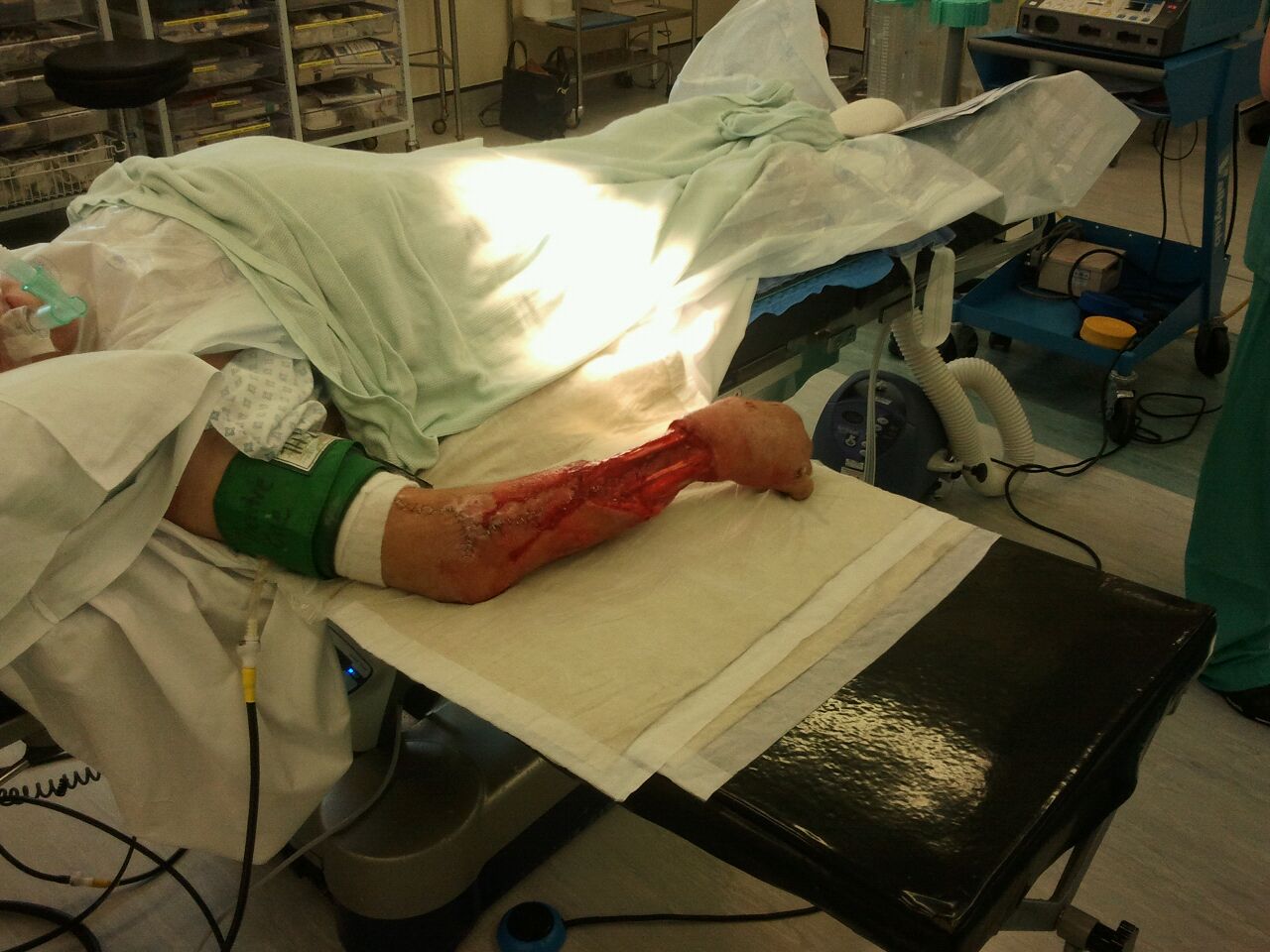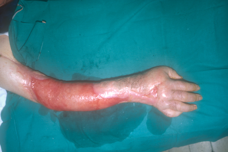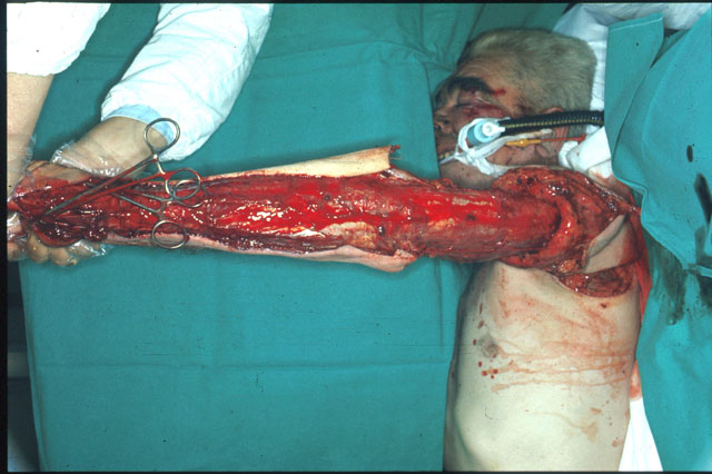 Herida con colgajo del miembro superior (producida con una correa de transmisión) |