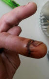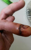 Dedo fracturado por aplastamiento (una puerta) y suturado tras reducir la
